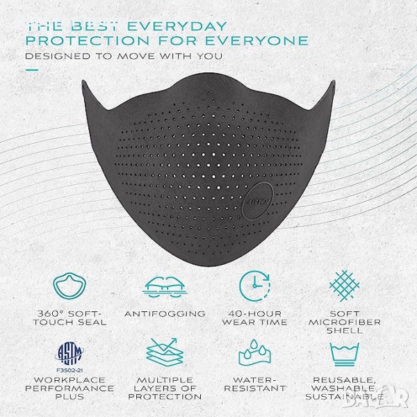 ФУНКЦИОНАЛНА И ДИШАЩА: Тази многопластова маска е направена от издръжлив предварително оформен микрофибър и е щадяща кожата и лека. Меката обвивка е устойчива на температура, вода и абразия, а уникалният куполен дизайн позволява балансирана циркулация на въздуха. Работи изключително с филтърни вложки на марката AirPop.