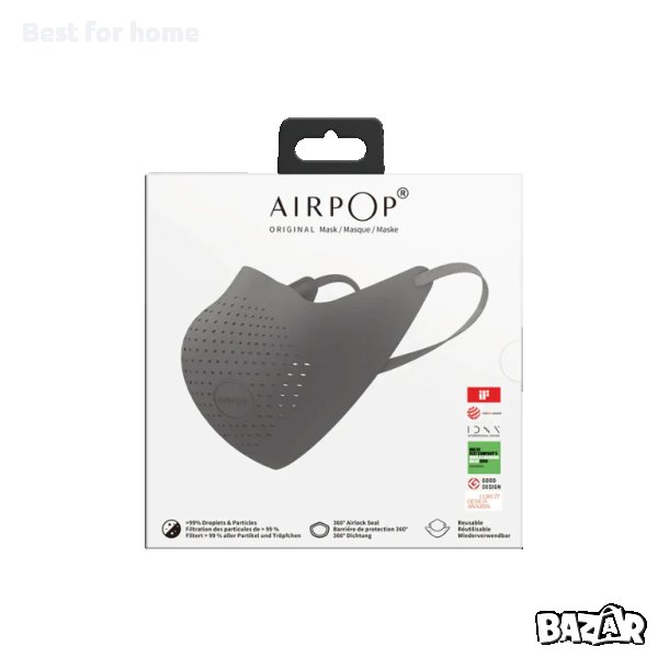 AIRPOP ОРИГИНАЛНА ДИШАЩА МАСКА ЗА ЛИЦЕ: Това е маска за лице за обща употреба. Това не е нито медицинско изделие, нито лични предпазни средства. Не е предназначен за употреба в здравни заведения и не е доказано, че намалява предаването на болести.