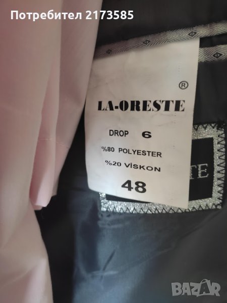 НОВО мъжко сако от кадифе LA-ORESTE,мъжко сако от кадифе с две копчета от пред,малък джоб от лявата страна,два джоба с капаци от пред,голям извит ревер от пред,с четири копчета на ръкава,втален от зад,лъскав хастар от вътре с 3 джоба,80 процента полиестер 20 процента вискон,размер 48.