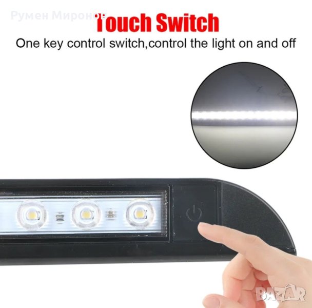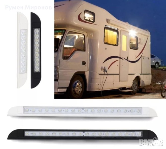 Продавам влагоустойчива лед лампа с тъч бутон за включване и изключване, за кемпер, каравана или лодка. Най-подходяща за мястото над вратата, или под тентата. Захранване 12/24 волта. Свето диоди 18 броя, 6000 Келвина. Размери 50.5/3.5 сантиметра. Цена 49 евро. Намира се в София. Възможно лично предаване или ЕКОНТ.