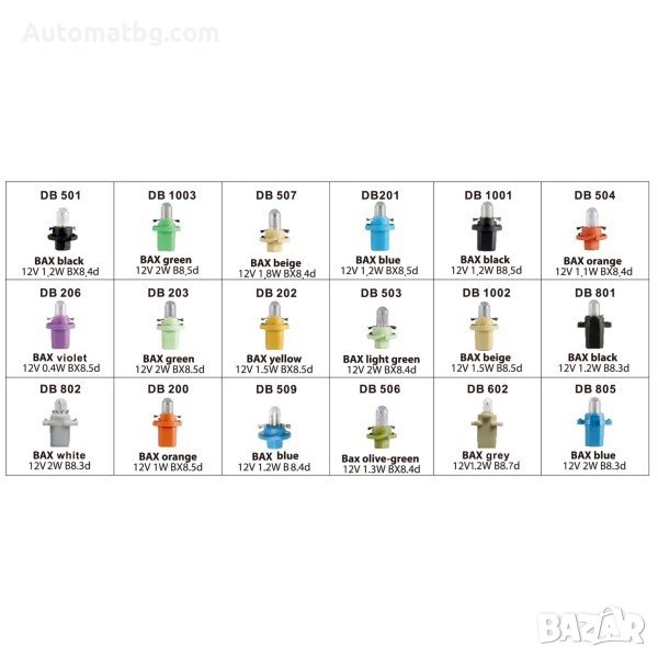 Комплект крушки за табло Automat, Резервни, 12V, A-180бр.
