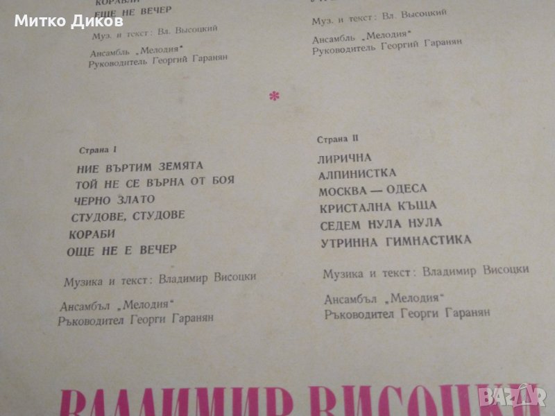 Владомир Висоцки две плочи-едната е Автопортрет → Обява 41472116