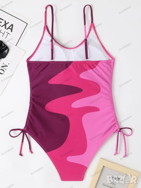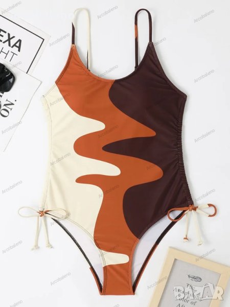 Нов бански костюм от една част, многоцветни шевове, гофриран дамски бански с връзки