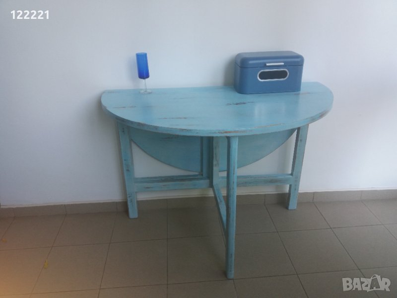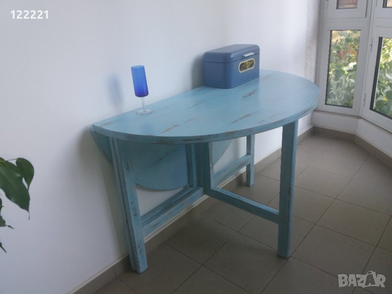 Продавам тази напълно реновирана сгъваема дървена маса. Боядисана в гръцко синьо, състарена и лакирана. Напълно функционална.