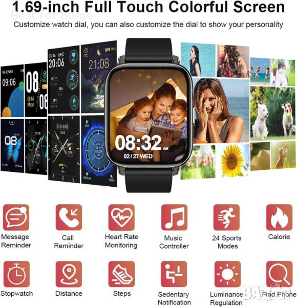 Смарт часовник за мъже, жени, Фитнес тракер 1,69" сензорен екран Смарт часовник Фитнес часовник IP68 Водоустойчив 24 Спорт, Пулсомер/Педометър/Монитор за сън, Проследяване на активността за Android iPhone