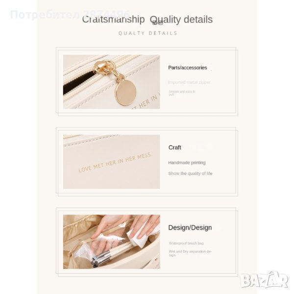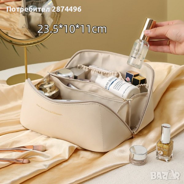 Специална водоустойчива повърхност предотвратява намокрянето на продуктите ви.Направена от висококачествени материали. Двуслойна козметична чанта от първокласна PU кожа, лесна за почистване, със специална водоустойчива повърхност, предотвратяваща намокрянето на продуктите.