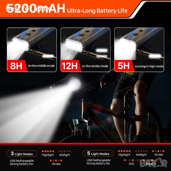 IPSXP 2022 мощни велосипедни светлини, IPX6 водоустойчивост, супер ярки светлини за нощно каране