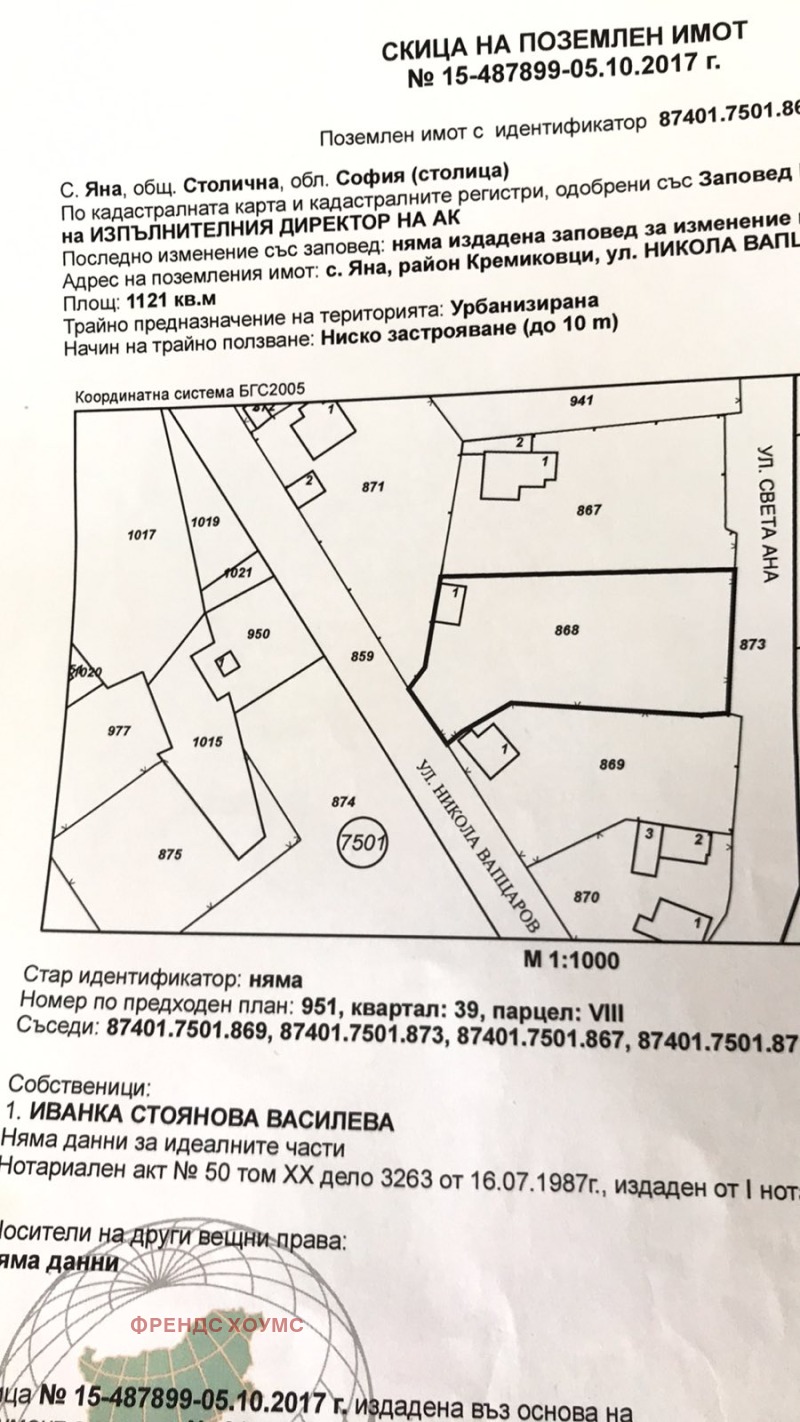 Продава ПАРЦЕЛ, с. Яна, област София-град