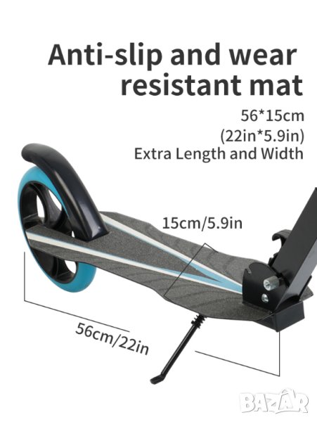 Дизайна на тротинетката е красив, с повече място за стъпване, за да стъпите по удобно с двата си крака. Повърхността за стъпване е с противоплъзгащо, грапаво покритие.