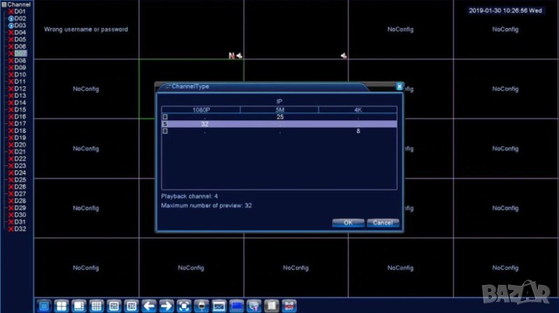 Ресурси на системата: Едновременно многоканално записване в реално време, Възпроизвеждане, Работа в мрежа, USB архивиране