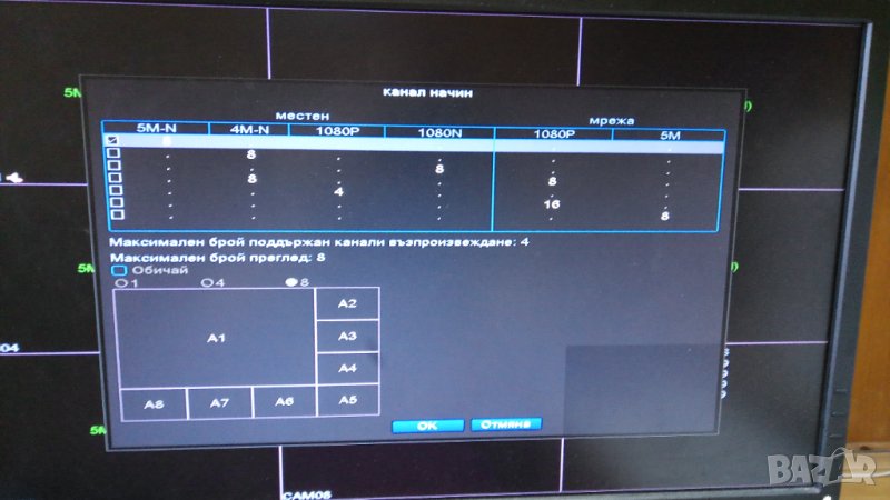 Възпроизвеждане: 8CH 5M-N Запис & 8CH 5M-N Преглед