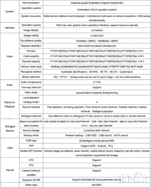 AHD / TVI / CVI / CVBS: 5М-N - 4 Камери в резолюция от 5 Мегапиксела или по-малка