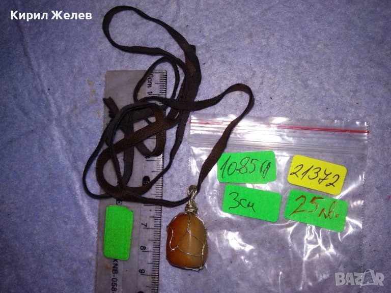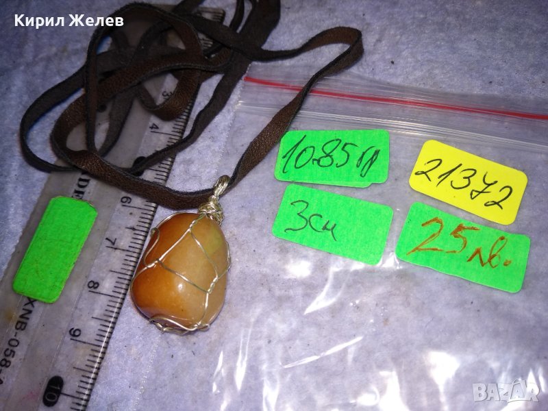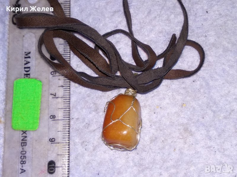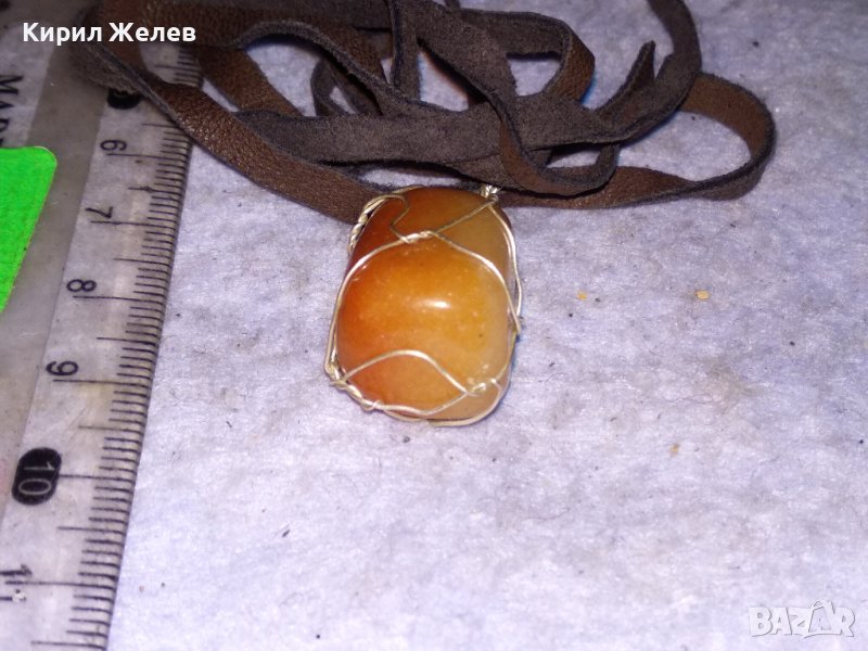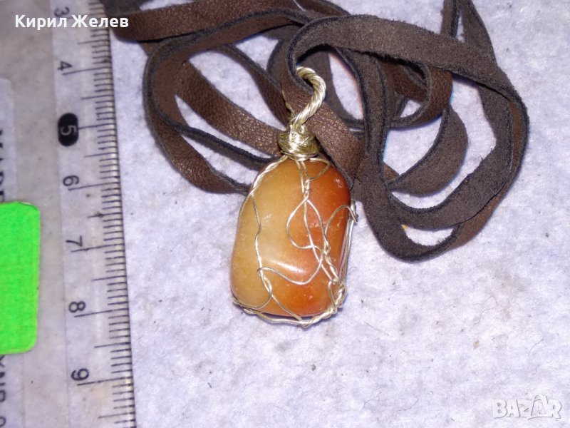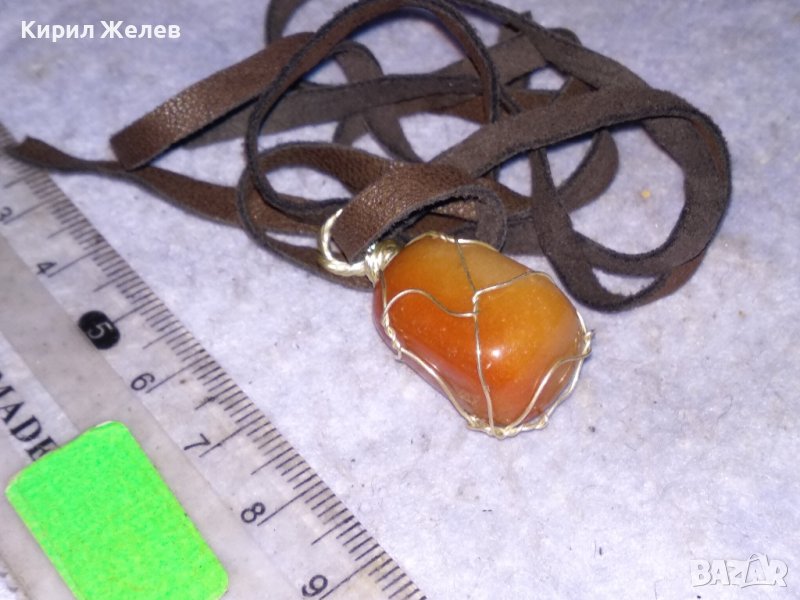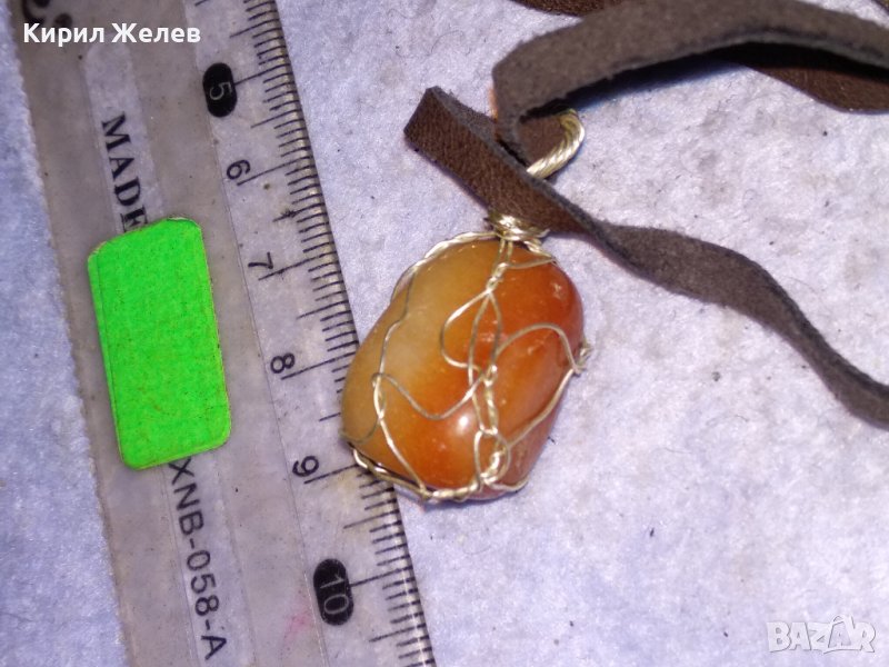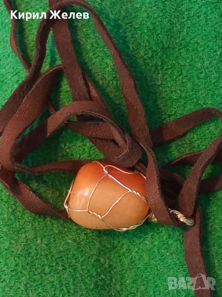 КРАСИВ ВИНТИДЖ - АРТ МЕДАЛЬОН НАТУРАЛЕН КАМЪК КАРНЕОЛ с ШНУРЧЕ от ВЕЛУР 21372