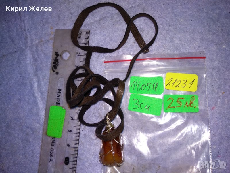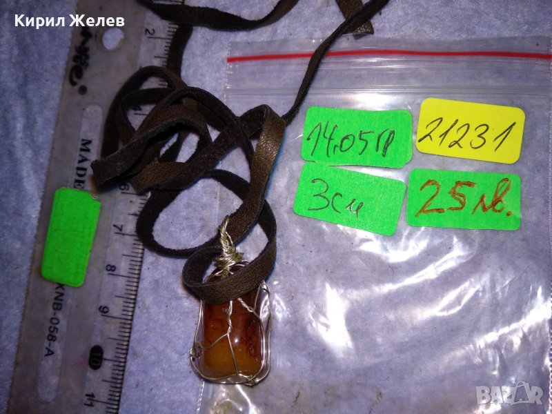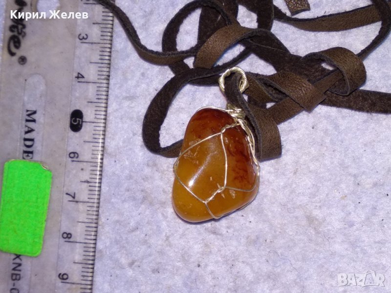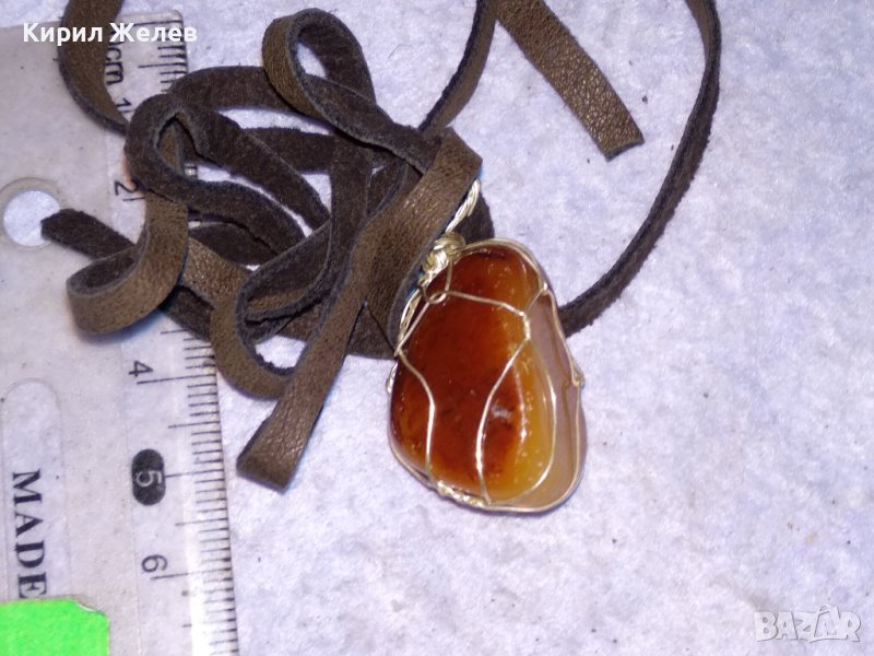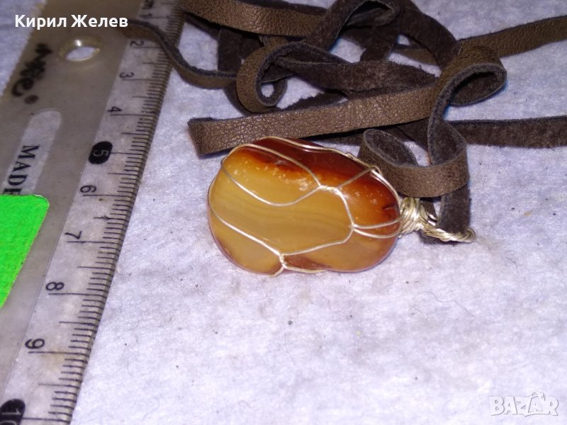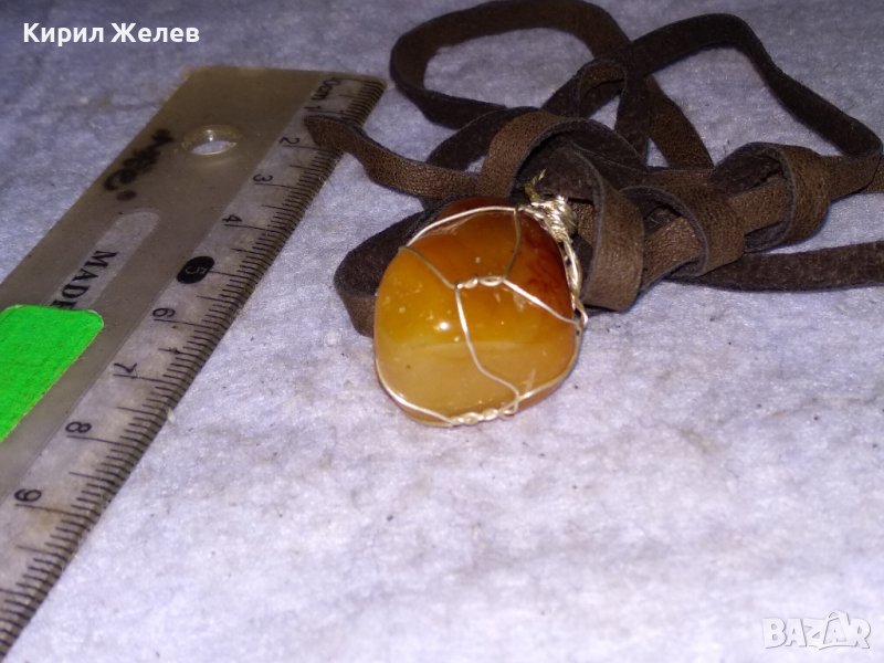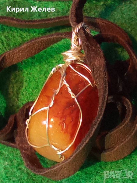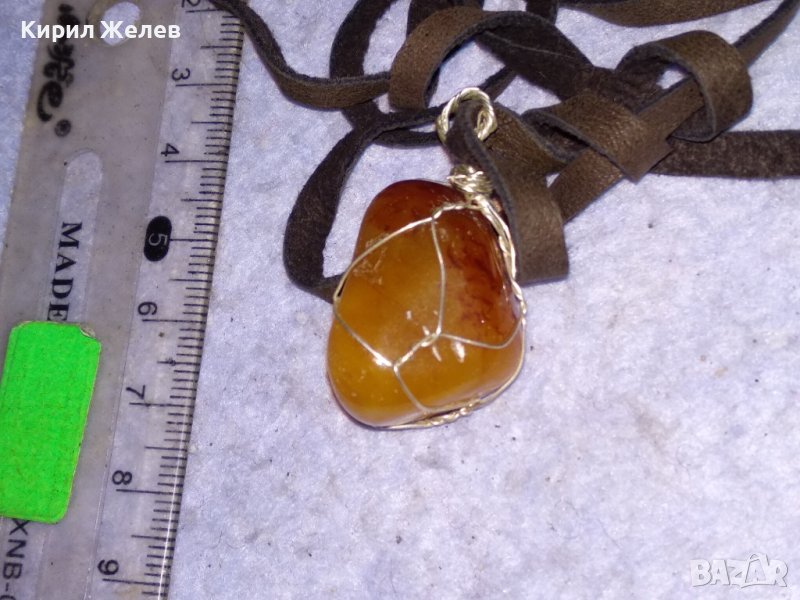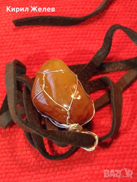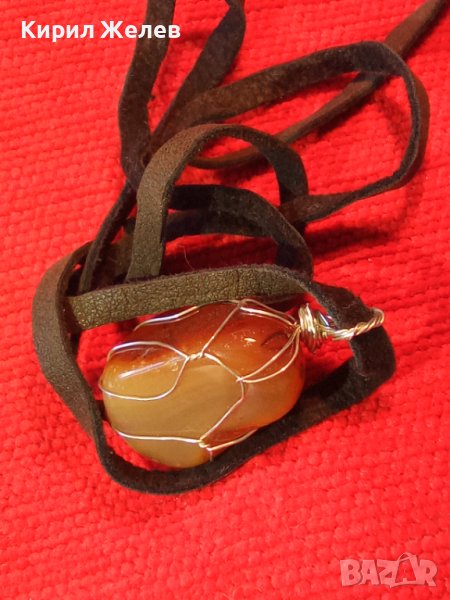 КРАСИВ ВИНТИДЖ - АРТ МЕДАЛЬОН НАТУРАЛЕН КАМЪК КАРНЕОЛ с ШНУРЧЕ от ВЕЛУР 21231