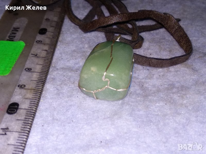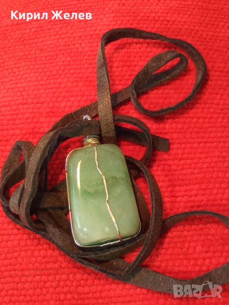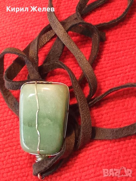 КРАСИВ ВИНТИДЖ - АРТ МЕДАЛЬОН НАТУРАЛЕН КАМЪК ЗЕЛЕН АХАТ с ШНУРЧЕ от ВЕЛУР 21393