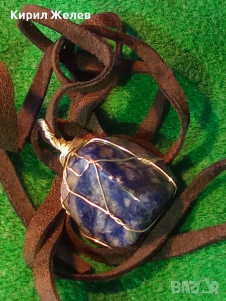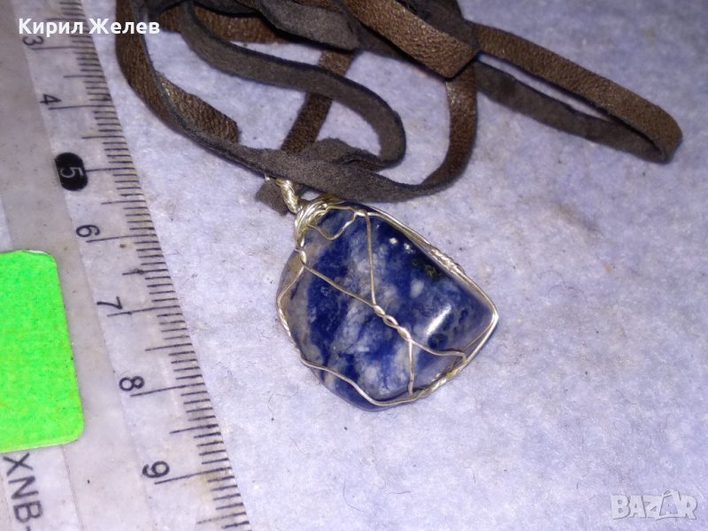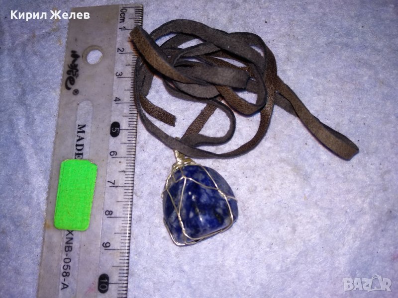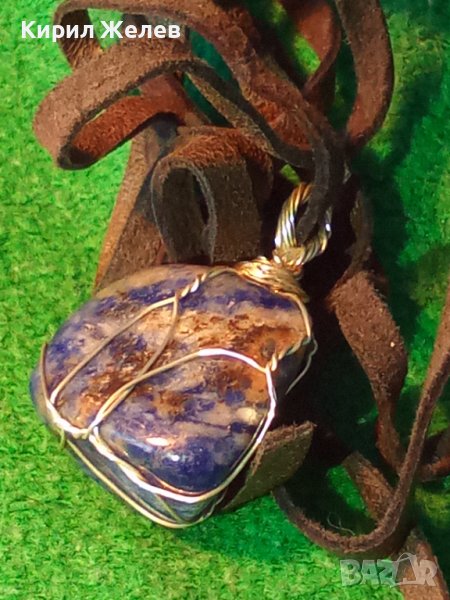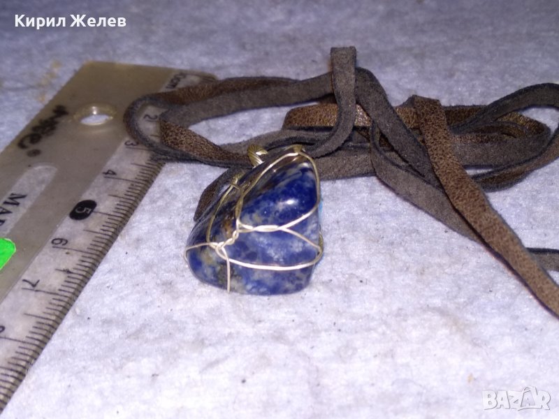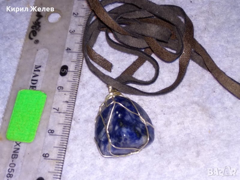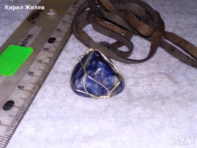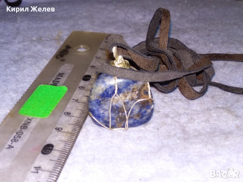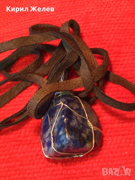 КРАСИВ ВИНТИДЖ - АРТ МЕДАЛЬОН НАТУРАЛЕН КАМЪК ЛАПИС ЛАЗУЛИ с ШНУРЧЕ от ВЕЛУР 23921