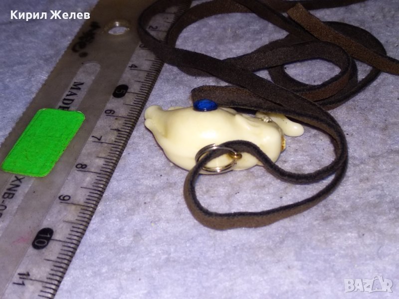 АРТ МЕДАЛЬОН СЛОНЧЕ от НАТУРАЛЕН КАМЪК МЛЕЧЕН БЯЛ ОПАЛ с БЯЛ и СИН ЦИРКОН с ШНУРЧЕ от ВЕЛУР 21417