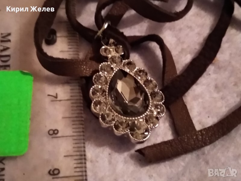 КРАСИВ ВИНТИДЖ - АРТ СРЕБРИСТ МЕДАЛЬОН с ФАСЕТИРАНИ КРИСТАЛИ и ШНУРЧЕ от ВЕЛУР 21232