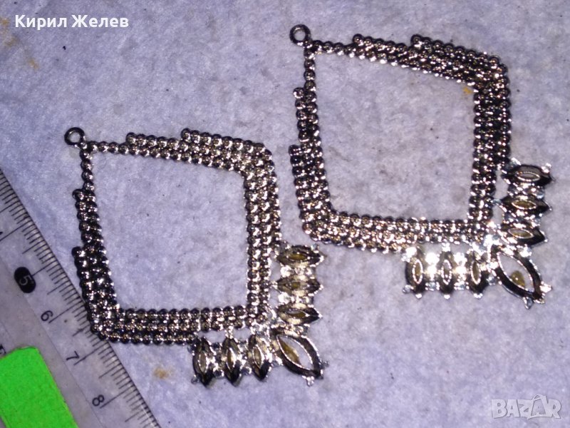 СРЕБРИСТИ РОМБОИДНИ ВИНТИДЖ АРТ ОБЕЦИ / ВИСУЛКИ с КРИСТАЛЧЕТА Подходящи и За МЕДАЛЬОНИ 26409