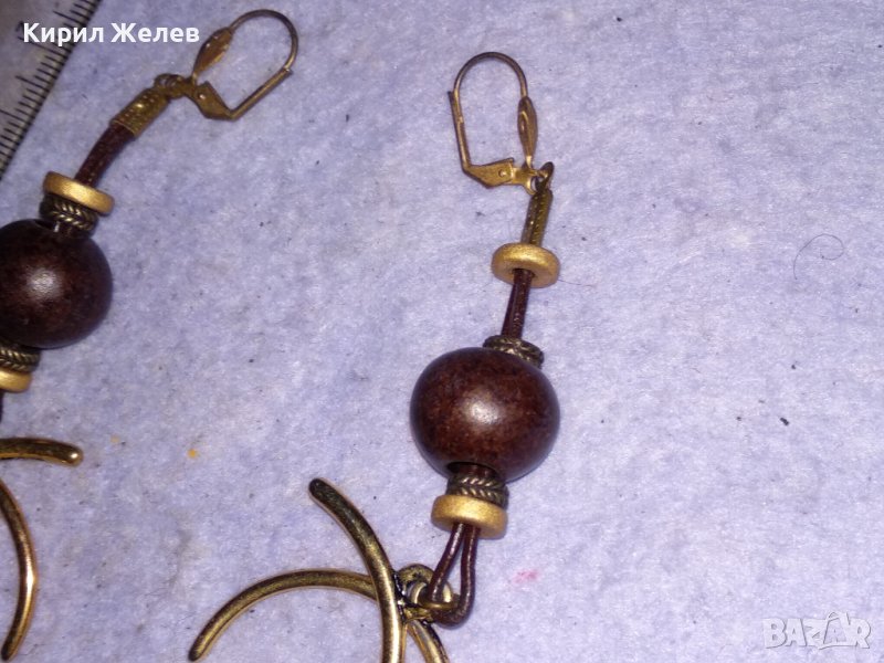 ПОЗЛАТЕНИ МЕДНИ ХИПАРСКИ ВИНТИДЖ АРТ СТИЛ ХЕНД МЕЙД ОБЕЦИ с ДЪРВЕНИ ТОПЧЕТА 38478