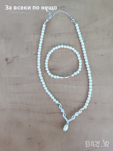 Колие и гривна с перли и сребърно покритие с камъни → Обява 41484169