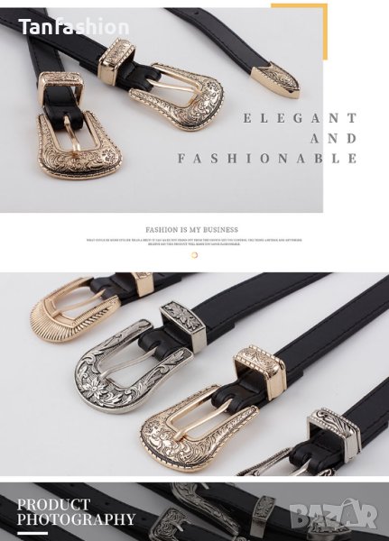 Нов актуален кожен дамски колан с две страхотни токи в златисто