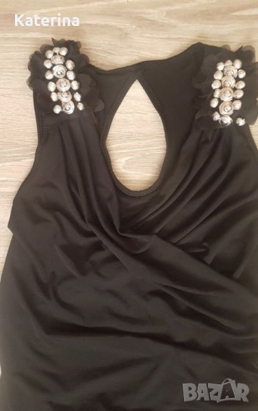 Интересна черна туника еластична е с леко паднало деколте не е носена само е изпрана без етикет.