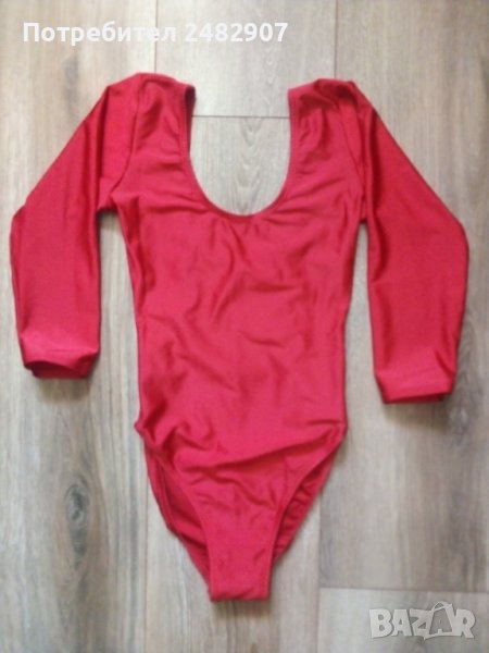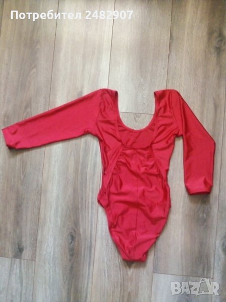 Червено детско боди за спорт от ликра, с дълъг ръкав., без закопчаване. Ширина в раменете - 27 см, ширина под мишниците - 33 см, дължина от рамото до хълбока - 39 см, дължина на ръкава от рамото - 36,5 см. Запазено, с нормални следи от износване.