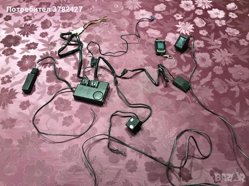 Алармената система е ползвана много малко и работи перфектно.Свалена е от мотоциклет Honda VTX.Пълен комплект сензори, датчици и дистанционно с дисплей.До колкото успях да разбера можело да запалва мотоциклета дистанционно.