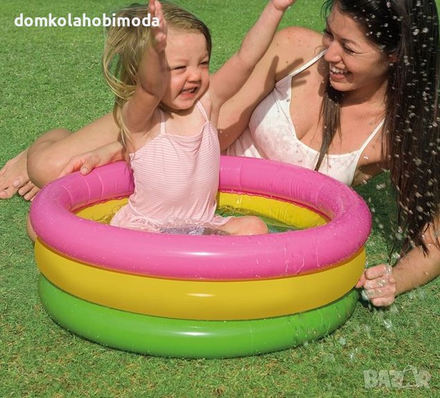 Описание - Характеристики басейн с надуваеми странични стени и надуваемо дъно. Особено издръжлив. Подарете на децата безкрайна прохладна игра в разгара на лятото. Изберете размера на басейна според наличната ви площ и за децата всеки ден ще бъде празник! *Вместимостта се отнася за запълване до 14см от стените. Материал на продукта Винил Комплект марка Intex Тегло на опаковката 5,3 кг Препоръчителна възраст 12-36 месеца Диаметър x Височина 61х22 см Капацитет (л) 28,0