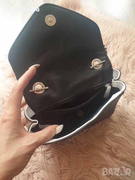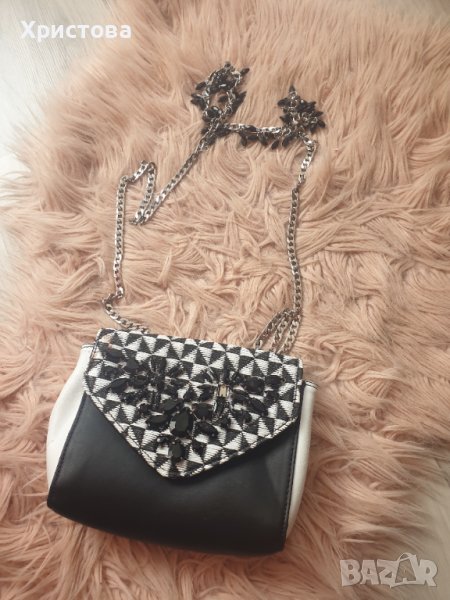 Кокетна малка чанта в бяло и черно на Алдо. Акцент камъни в предната част и по дръжката, която е синжир. Ползвана по повод. Символични цени на всички дрешки в профила ми. Опция тест и преглед. Доставка с отстъпка до офис ЕКОНТ. 0899243418