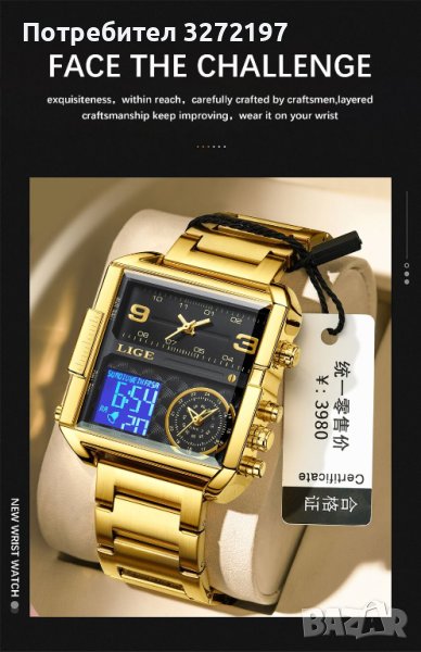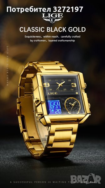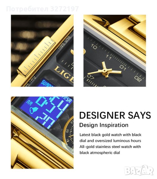 LIGE кварцов часовниk модел 2023, с 3 независими дисплея , уникален дизайн