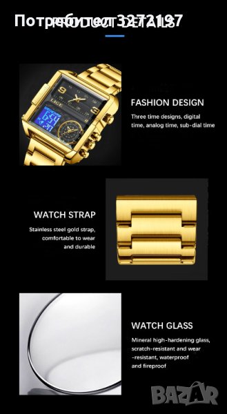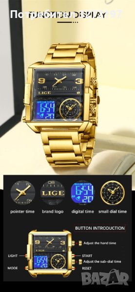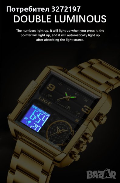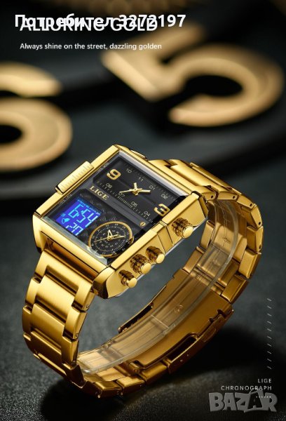 LIGE кварцов часовниk модел 2023, с 3 независими дисплея, уникален дизайн, водоустоичив,