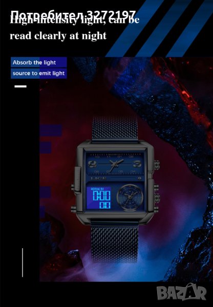 LIGE кварцов часовниk модел 2023, с 3 независими дисплея, уникален дизайн, водоустоичив,