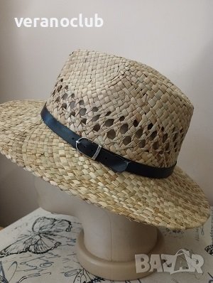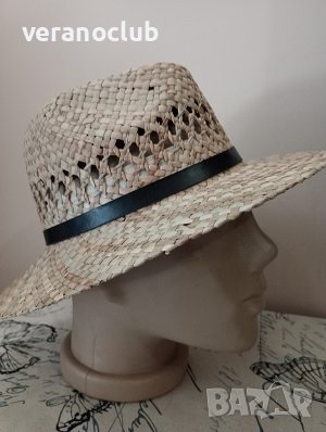 Мъжка летна широкопола шапка в класически непреходен стил Борсалино. Шапката е с права периферия. Изработена е от здрава естествена слама - натурална трева. Естествен цвят на шапката.