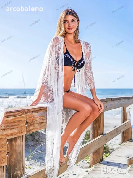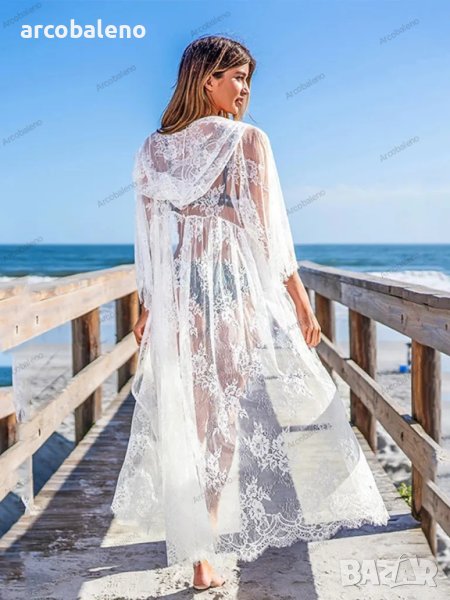 Дизайн: С нежна бродирана дантела и стилен дизайн с качулка, тази риза добавя нотка елегантност и слънцезащита към вашата плажна визия.