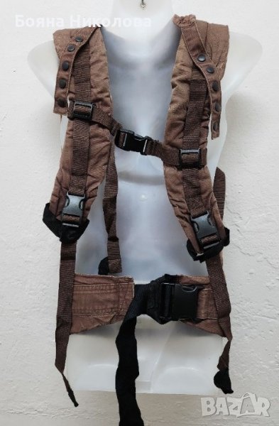 Създаден за да разпределя равномерно натоварването от теглото на бебето/детето върху рамена и ханш, което позволява по-продължително носене.