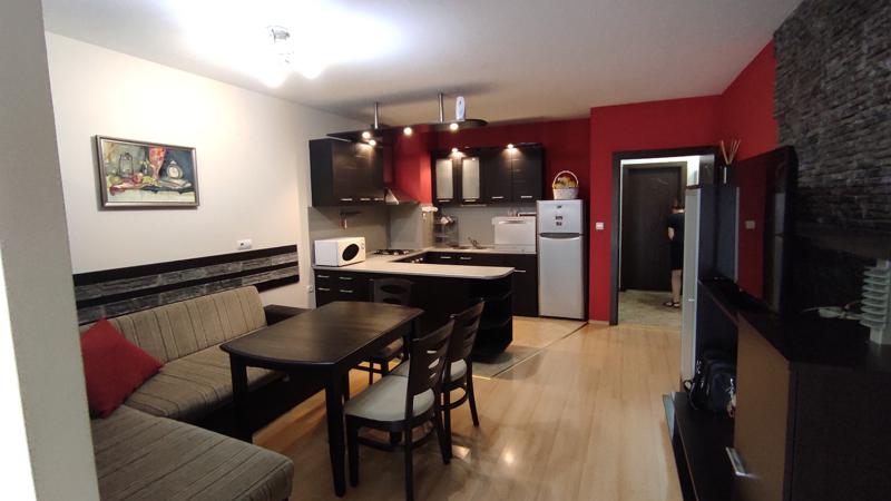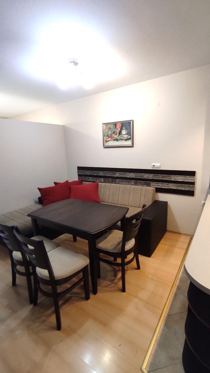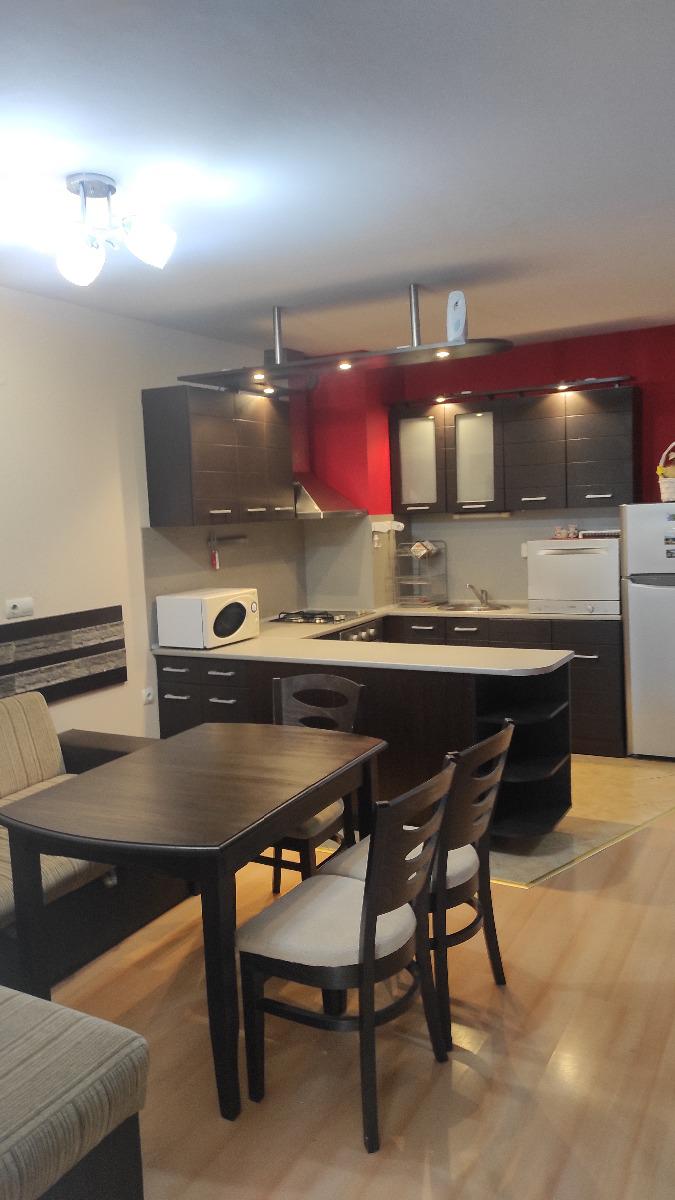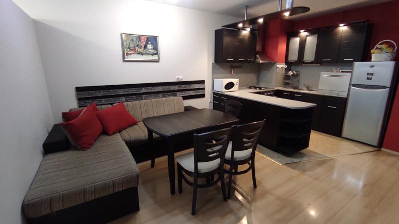 Изцяло обзаведен и оборудван с всичко необходимо за едно домакинство: климатик, хладилник с фризер, вградена фурна с керамичен плот, телевизор, пералня, съдомиялна, микровълнова фурна. В близост има паркове, детски градини, училища, аптеки и големи хипермаркети. Огледи по всяко време. С ключ за имота.