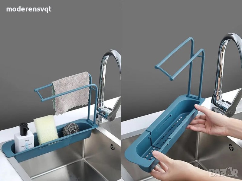 Телескопичен органайзер за мивка с поставка за кърпи