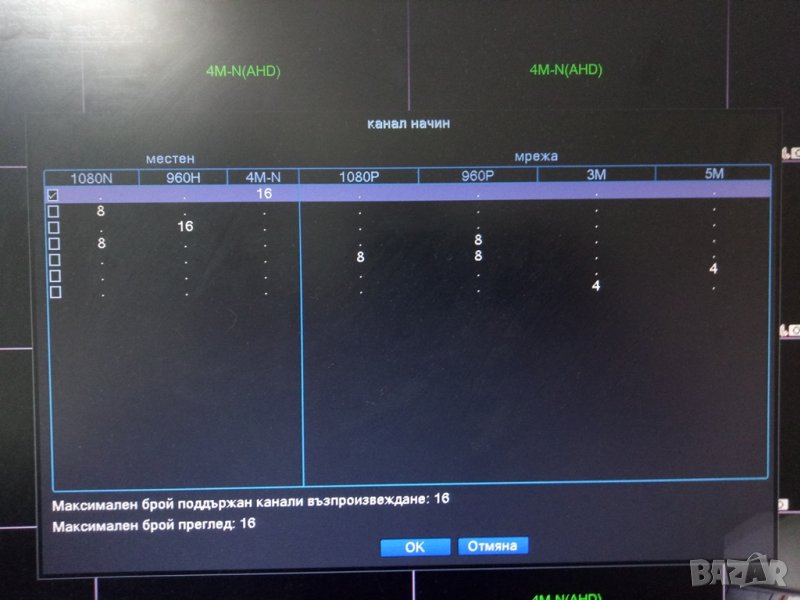 AHD / XVI / TVI / CVI / CVBS: 4М-N (8fps) - 16 Камери