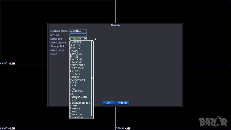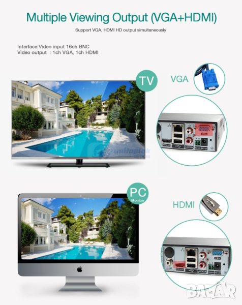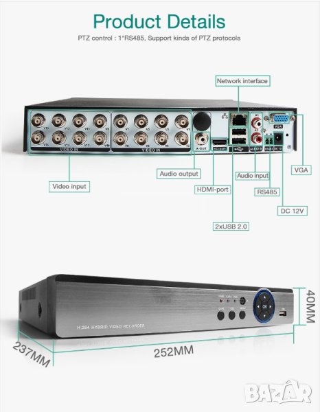 HVR: 8 * 1080N AHD / XVI / TVI / CVI / CVBS + 8 * 960P IP Камери