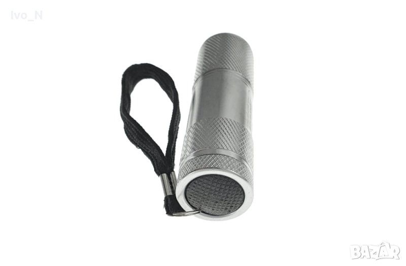 Джобно фенерче с 9 LED светлини. Работи с 3 батерии ААА (включени).Дължина: 90 мм.