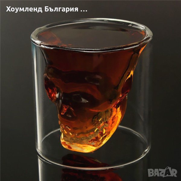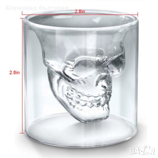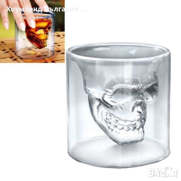 Един уникален подарък за любителите на алкохолни напитки - чаша с формата на череп вграден в нея. Изработена е от стъкло и е с раземри 7 см. х 6,5 см.и вместимост 75 мл.