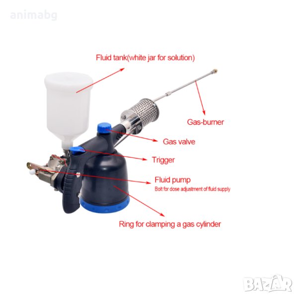 Подготвената емулсия се изсипва в резервоара на апарата и след това с помоща на помпата с натискане на лоста се инжектира необходимото количество емулсия, докато не излезне от изпускателната тръба чрез изходна дюза. След отваряне на газовия вентил пускаме газ към горелката и го запалваме в защитна мрежа. Чрез отоплителна спирала ще започне, под влиянието на топлината да се появяват тънки струи от топла емулсия и след 2-3 секунди гъст дим, с който извършваме третиране на пчелите срещу вароа.