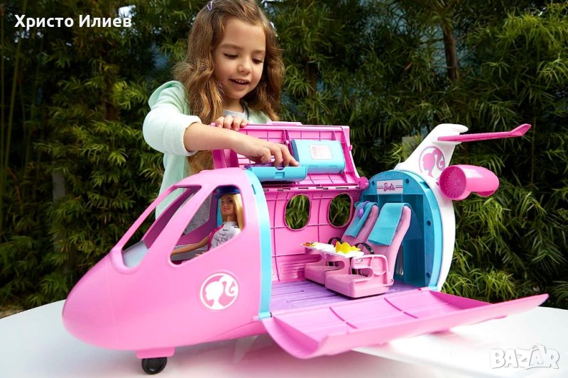 Историите излитат с кукла Барби в този самолет, който се отваря за разказване на истории в кабината - работещи функции, въртящи се колела, вдъхновени от авиокомпанията стикери и 15+ реалистични аксесоара създават паспорт за време за игра.