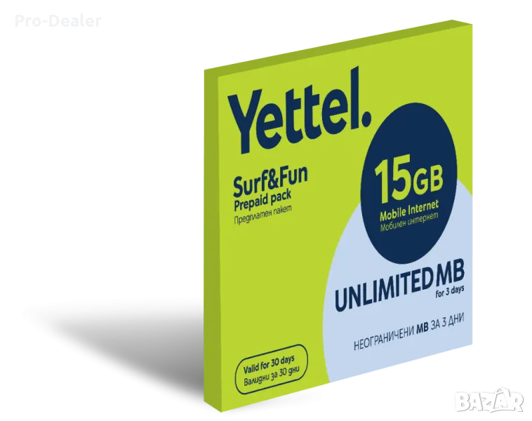 ЙЕТТЕЛ Предплатен стартов пакет Мобилен интернет 15 GB сим карта карти / sim card → Обява 41507893