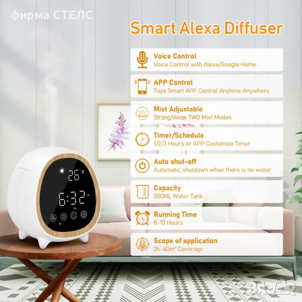 или сменете режима. Дифузерът работи с Alexa за лесна употреба.