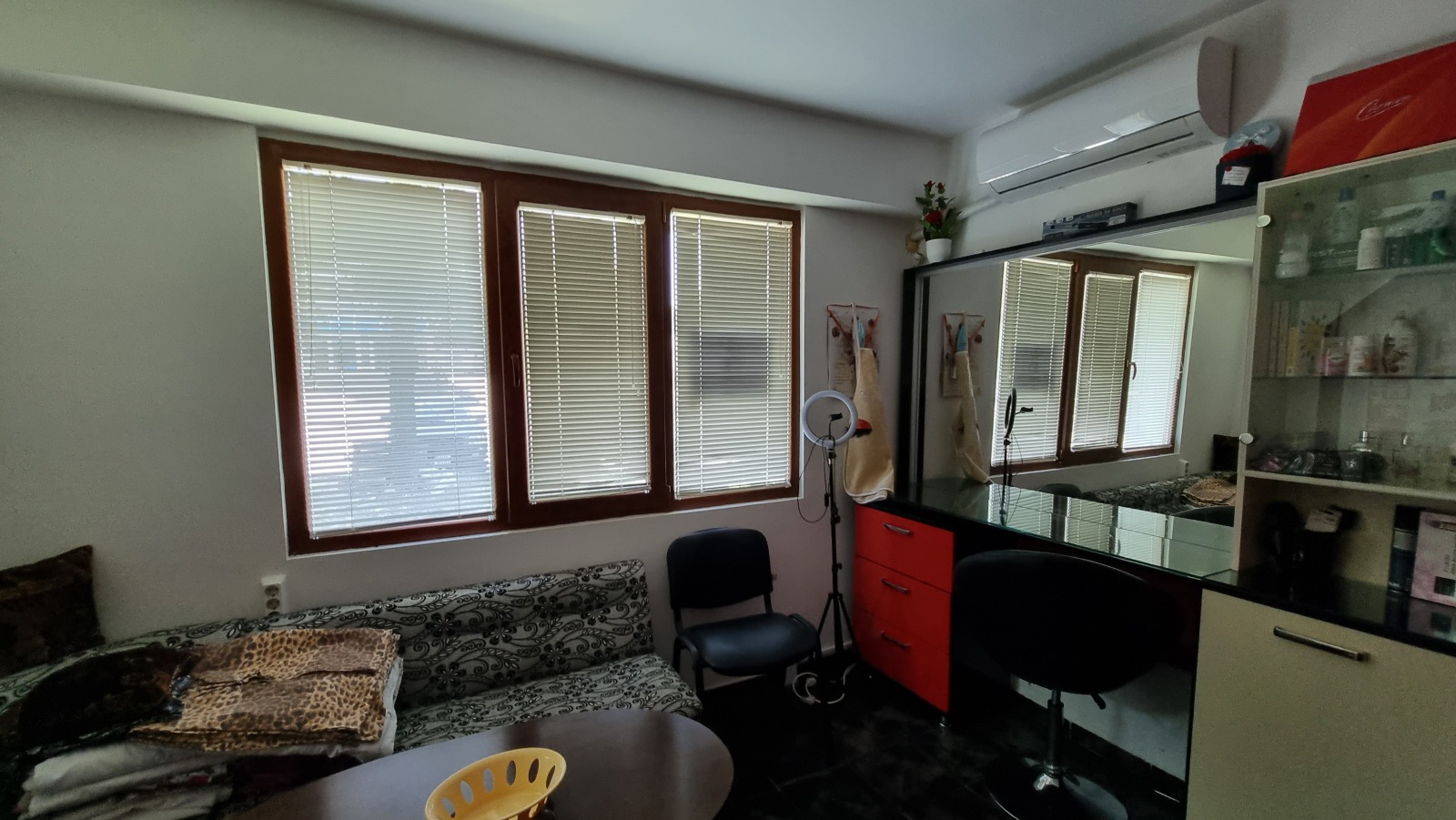 Продава се салон за красота на комуникативно място в жилищен комплекс 'Орел', състоящо се от два търговски обекта. Единият е с площ от 40,70 квадратни метра. Другият е с площ от 27,52 квадратни метра. Общо санитарно помещение за двата обекта! ПВЦ дограма и климатици! Продава се с ново оборудване за фризьорски салон!
