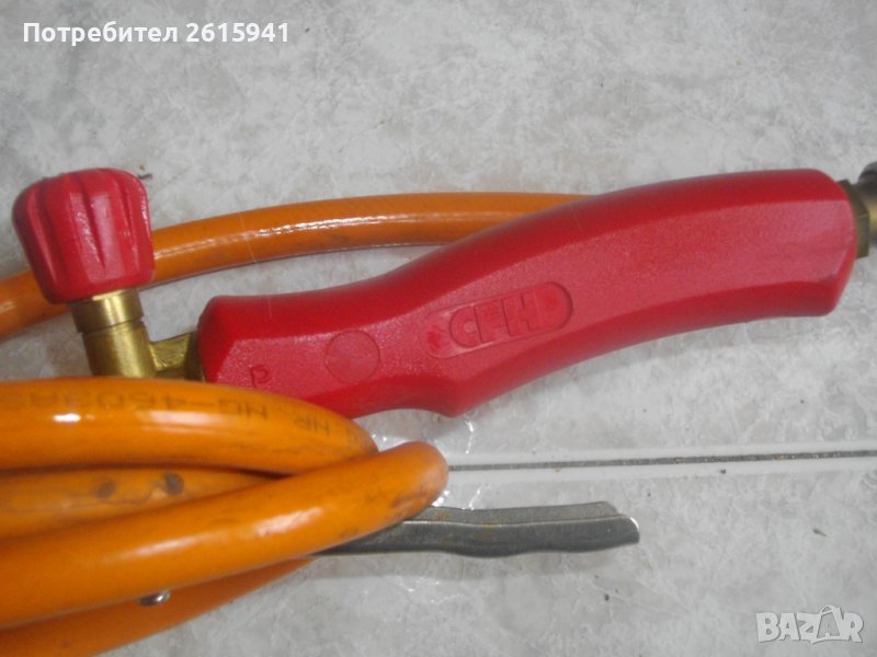 ОПИСАНИЕ на газова пропан.бутан горелка за покриви/хидроизолации CFH - 159 лв. Почти нова, ползвана веднъж. Съвсем бегли следи от употреба. Дължина цялостна - 88 см, бронз глава, върток спирателен, дълъг метален спусък, оригиналнай стойка метална за самостоятелен стоеж. Маркуч 5 м като нов, без забележки, захват 3/8. Чашка диаметър ф 70 мм външен с 7 дупки за пламъка. Цена на горелката - 159 лв.