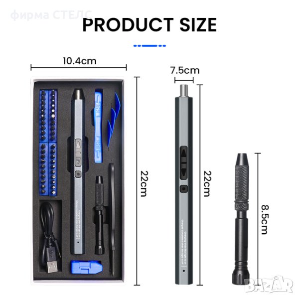 Прецизна електрическа отвертка, Type-C. Комплект